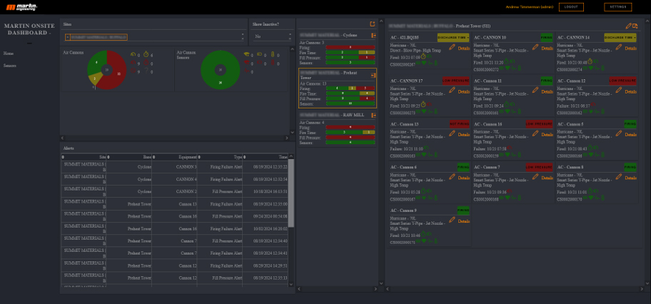 The N2® Air Cannon Intelligence System delivers real‑time monitoring of every cannon on your line, detecting misfires, measuring blast efficiency, and tracking pressure and temperature to spot issues before they impact production. A rugged sensor and cellular gateway feed data to a cloud dashboard, giving you instant visibility into system health, performance trends, and alerts—turning air‑cannon maintenance from reactive to predictive while reducing manual inspections and improving safety.